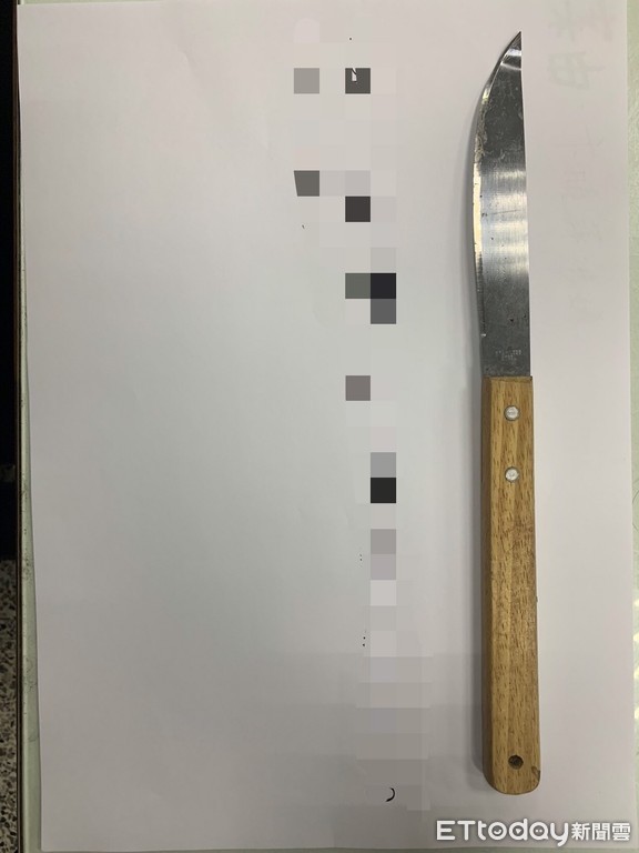 ▲女攻擊鄰居用的水果刀,遭警方查扣 。(圖/記者羅志華翻攝)