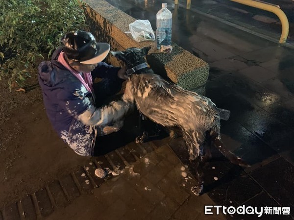 ▲▼飼主程男在公園內與愛犬被潑漆。(圖/何承恩提供)