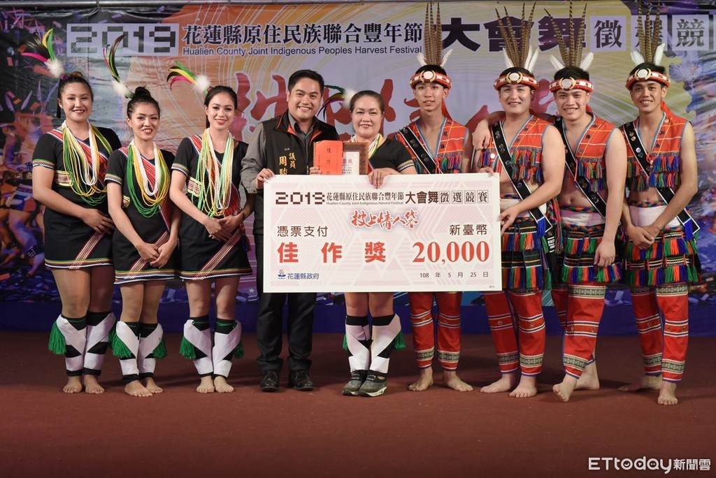 ▲花蓮縣原住民族聯合豐年節徵選大會舞競賽,獲入圍3隊,每隊各得獎金5萬元,由縣長徐榛蔚親自頒贈。(圖/記者王兆麟翻攝,下同)