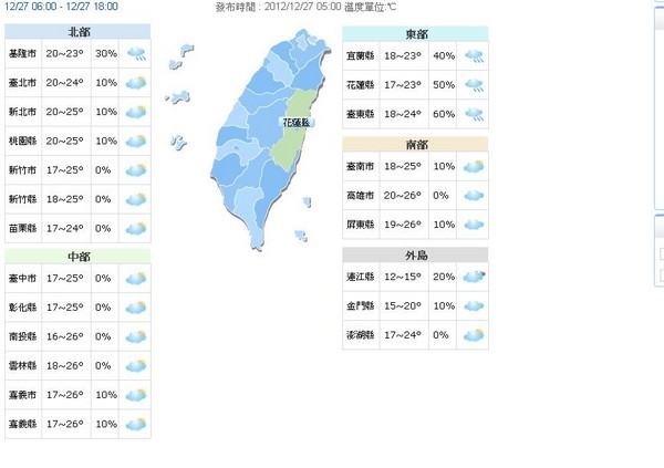 另外,中央氣象局提醒,27日白天台灣各地大多為多雲到晴的天氣,僅東半部地區有短暫雨,晚起鋒面接近影響,中南部、北部地區及澎湖、金門、馬祖將轉為有短暫雨的天氣。28日鋒面影響,台灣各地及澎湖、金門、馬祖有短暫雨。