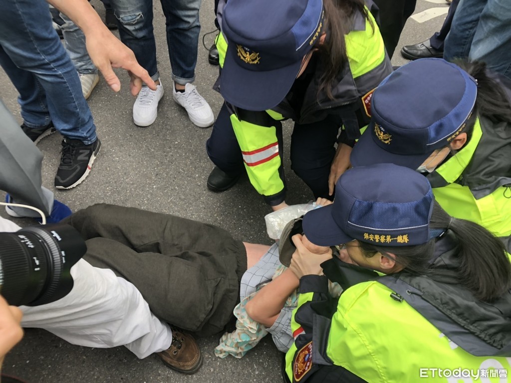 ▲獨派抗議民眾霸占馬路遭警方架離。(圖/記者林銘翰攝)