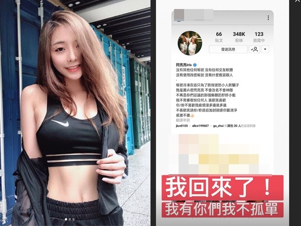 「爆漿紅豆餅女神」閃亮亮和YouTuber「硬漢兄弟」黃包包性愛影片外流後,直接關閉Instagram帳號,後雖重新開啟但頭貼轉黑;在19天的神隱後,閃亮亮將IG頭貼換為性感照,並在自介寫下,「不再是你們認識的那個樂觀的好好小姐」。