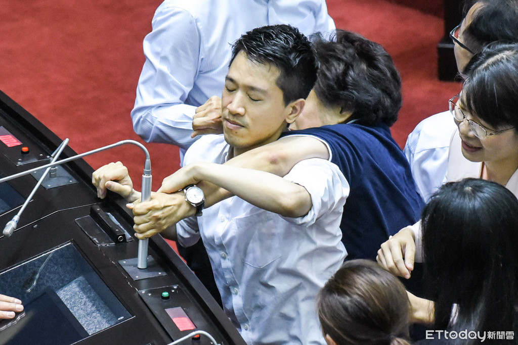 ▲立法院處理李進勇人事案,藍綠立委推擠,沈智慧在備詢台揍何志偉。(圖/記者林敬旻攝)
