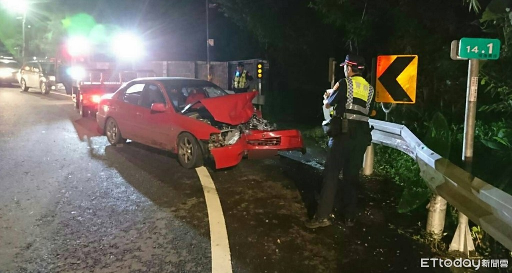 逃逸紅色轎車在台7線14.1公里處自撞護欄毀損,44歲的劉姓男子手部等多處受傷,員警查出車上載有肖楠、扁柏與砍伐工具一批,當場以現行犯將劉逮捕偵辦。