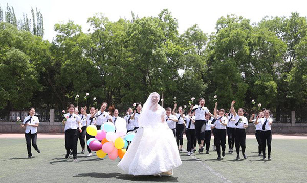 一名男大生穿婚紗、28名女生穿西裝排隊「娶」他!甘肅省蘭州市西北師範大學一組特別的畢業照爆火網路,被網友們戲稱為「年度最搞笑畢業照 」。
