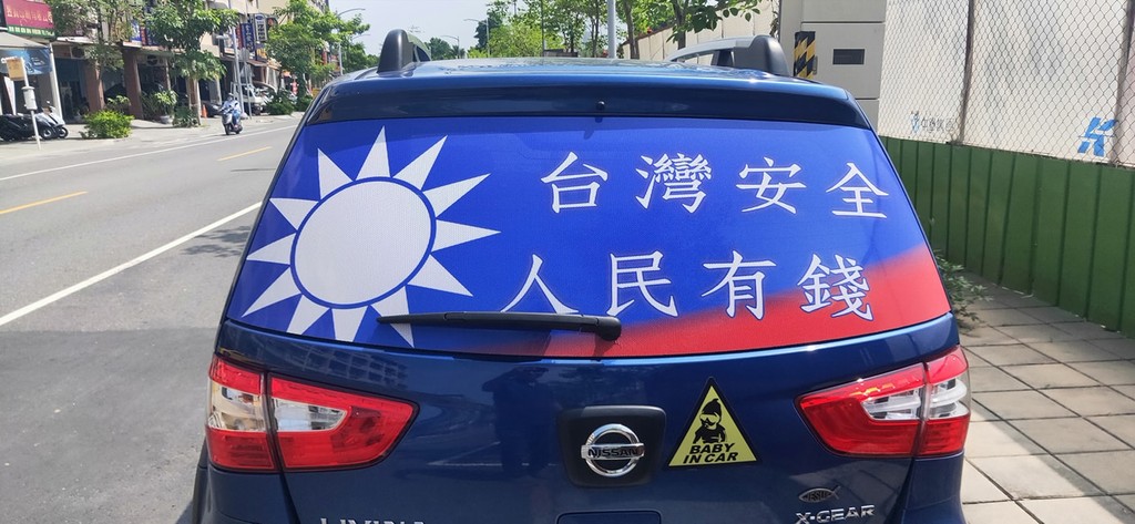 ▲韓粉自製「韓家軍」戰旗到凱道揮舞。(圖/韓粉貼紙哥提供)