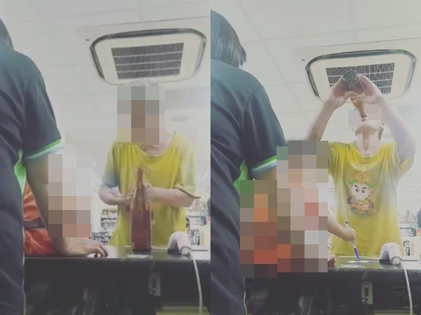 影片中可以看到,阿伯到便利商店購買米酒後,請店員幫忙用開瓶器將瓶蓋打開,當他將錢放在桌子上後、雙手立刻拿起米酒直接灌;期間,阿伯完全沒有將酒瓶放下,迅速地以18秒喝完米酒,並將酒瓶放下、帥氣轉身離開,頓時讓店員全都傻眼。