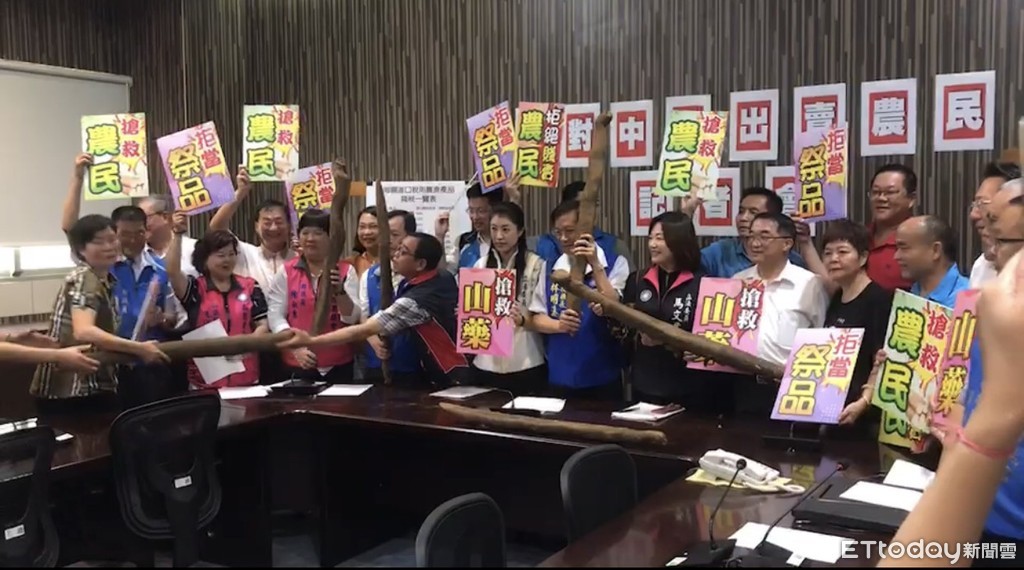 立法院日2日審查海關進口稅則修正案,將降低日本產農產品進口關稅,並將山藥列為降稅項目,引發產地農民強烈反彈。南投縣長林明溱、立委馬文君及許淑華3日開了第一槍,表示南投縣山藥產量占了全國6成,不能讓日本農產品進口減稅過關影響農民生計,林明溱並揚言,「如果立法院會強行通過這項修正案,將號召藍營15位縣市長,率農民包圍立法院」。