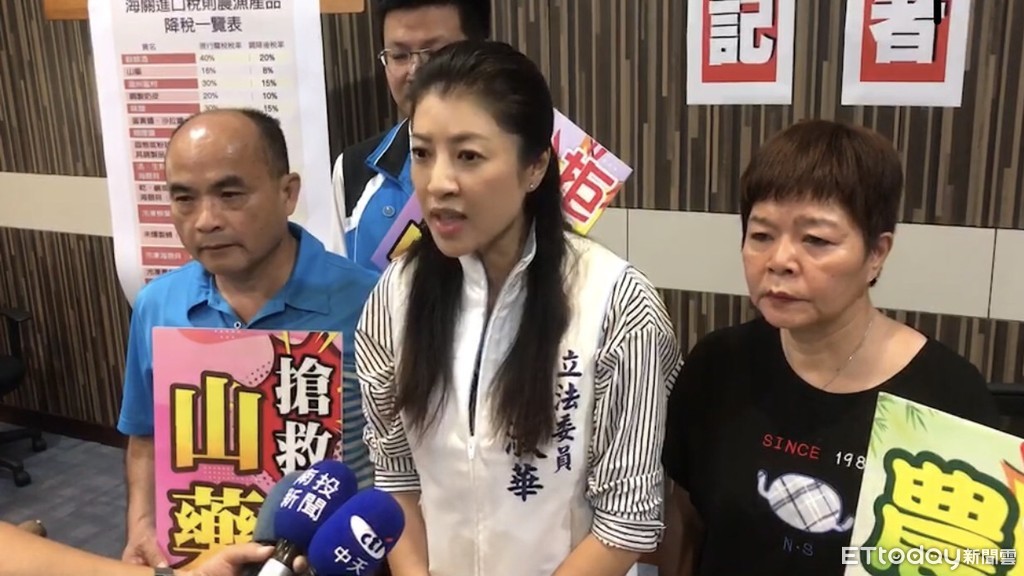 立法院2日審查海關進口稅則修正案,擬定降低日本產農產品進口關稅,並將山藥列為降稅項目,而南投為台灣山藥主產地,產量佔全國6成,3日南投縣長林明溱、立委馬文君、許淑華3日為農民發聲,在南投縣議會召開反對記者會。許淑華激動表示,「蔡英文踐踏農民辛苦,我相當不恥,呼籲全國縣市長不分藍綠為農民發聲」。