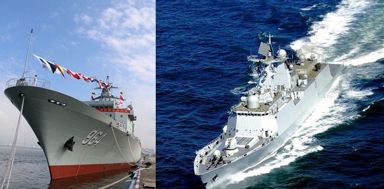 ▲許昌號護衛艦(圖左)與駱馬湖號綜合補給艦(圖右)。(合成圖/翻攝自百度百科)