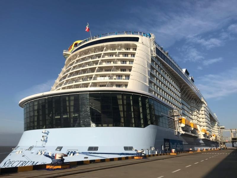 造價12.5億美元(約375億元新台幣)的亞洲最大郵輪「海洋光譜號」3日抵達上海吳淞國際郵輪碼頭。這艘專為中國市場打造的郵輪搭載約5000名遊客從德國出發,經過47天來到上海,未來一年將以上海為母港展開多條線路的遊輪之旅,搶攻大陸旅遊市場。