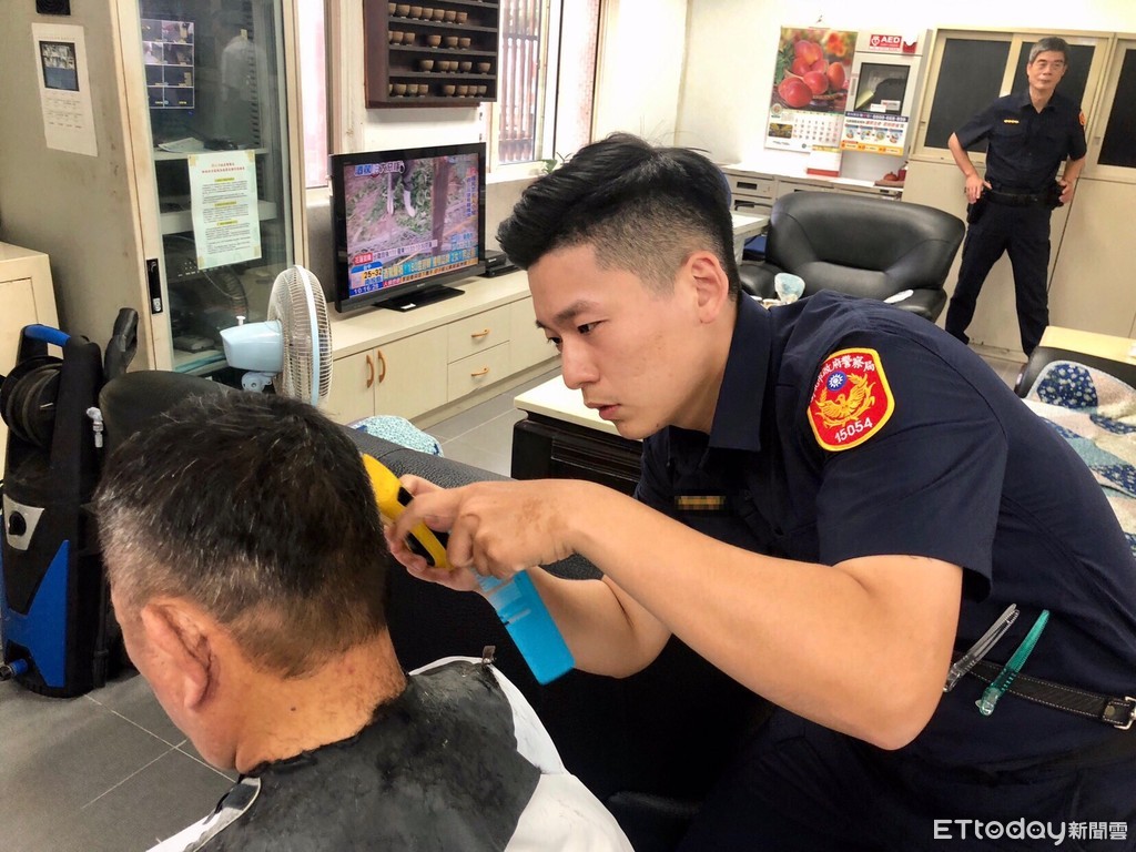 ▲ 美髮設計師黃敏誠帶刀從警,免費幫瑞芳金瓜石弱勢義剪。(圖/新北市瑞芳警分局提供,下同)