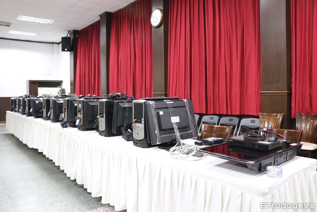 ▲▼警方現場查扣查扣電腦主機、螢幕及手機等犯罪工具。