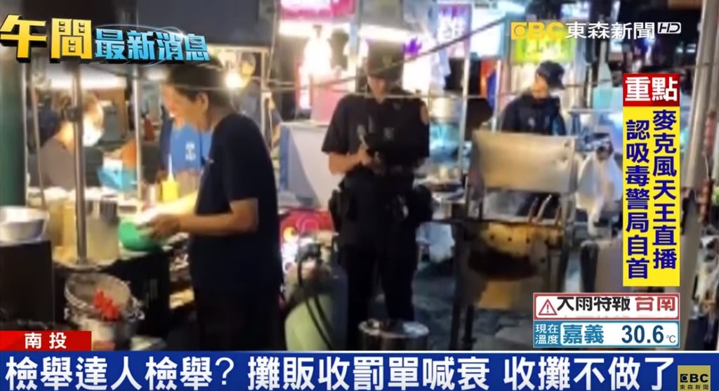 ▲員警突襲草屯大觀夜市,30多家攤販中招全收紅單。(圖/東森新聞)