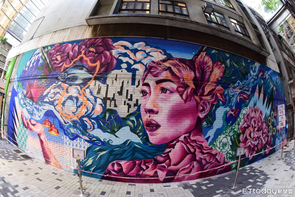 為了讓老舊樓房附近看起來不再這麼骯髒,香港市區重建局去年挑選了已有40年歷史的「中環鴻德大廈」,作為第一個「地區營造」的合作大廈伙伴,並且在4月起委託日本藝術家,將又老又舊的大廈外牆改造,呈現出一幅融合香港當地傳統,以及西方現代元素的「巨型壁畫」。