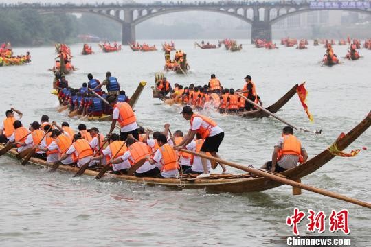 ▲今年的道州龍船賽有144艘船參加。(圖/翻攝自《中新社》)