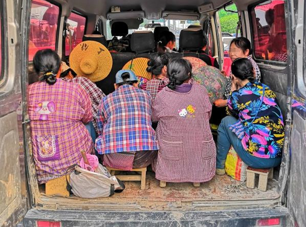 ▲6人座小車裡坐了17位大媽。(圖/翻攝自《浙江在線》)