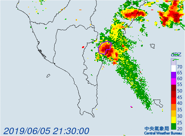 氣象局升級「豪雨特報」,因對流雲系發展旺盛,易有短時強降雨,5日晚間至6日清晨台東有局部大雨或豪雨發生,花蓮有局部大雨。其中晚間9時41分發布台東縣「大雷雨」即時訊息,持續時間至10時45分,提醒卑南、太麻里及金峰鄉民眾慎防劇烈強降雨、雷擊、冰雹現象,溪河水暴漲,以及低能見度,低窪低區可能淹水。
