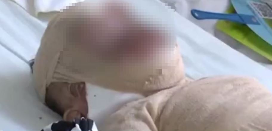 ▼男童的皮膚連同衣服被阿公撕下。(圖/翻攝自微博,下同)