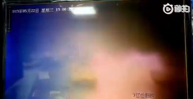▲監視器畫面最後顯示廚房爆炸。(圖/翻攝自微博)