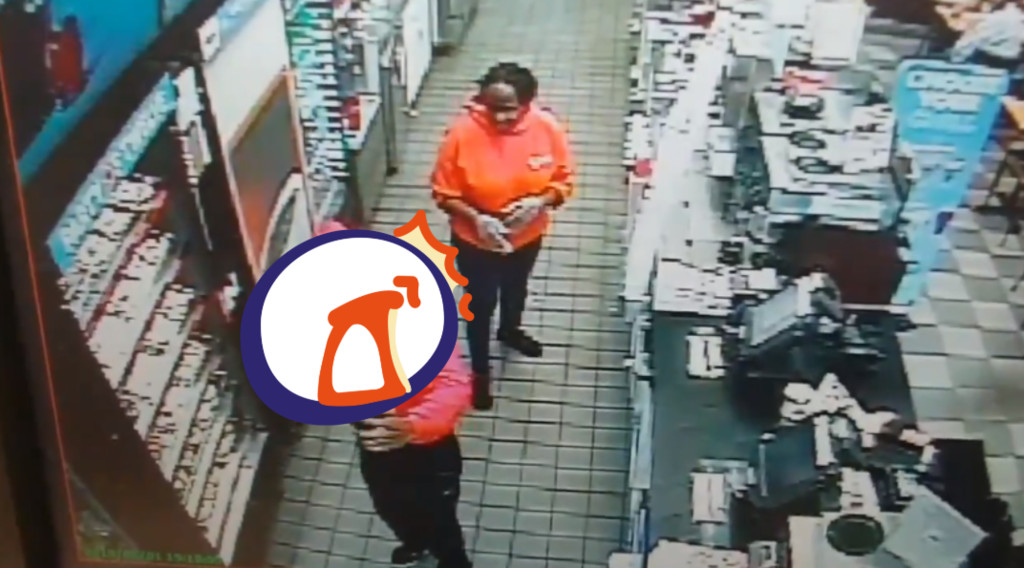 從影片中可以看到,當時身穿紅色帽T的竊賊進入店內後,正拿著手機「直播」裝嗨,他先是跳上收銀檯上大秀舞技,接著慢慢走向擺放甜甜圈的櫃子旁,大膽地拿起甜甜圈咬了一口,讓一旁傻眼的店員完全不知所措,轉身逃向後方廚房。當時紅衣男偷完甜甜圈和一瓶果汁後,還在經過店員和現場顧客旁邊時,轉身讓他們全都入鏡,隨後大搖大擺地走出店門口,彷彿一切都是浮雲。