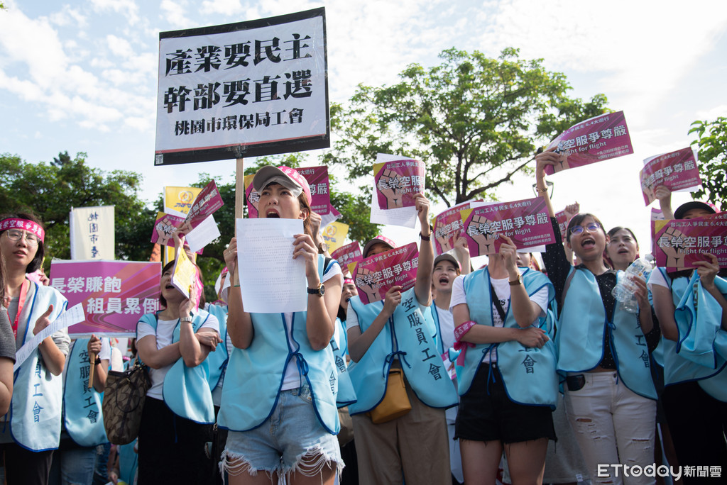 ▲長榮空服員工會日前上街遊行。(圖/記者季相儒攝)