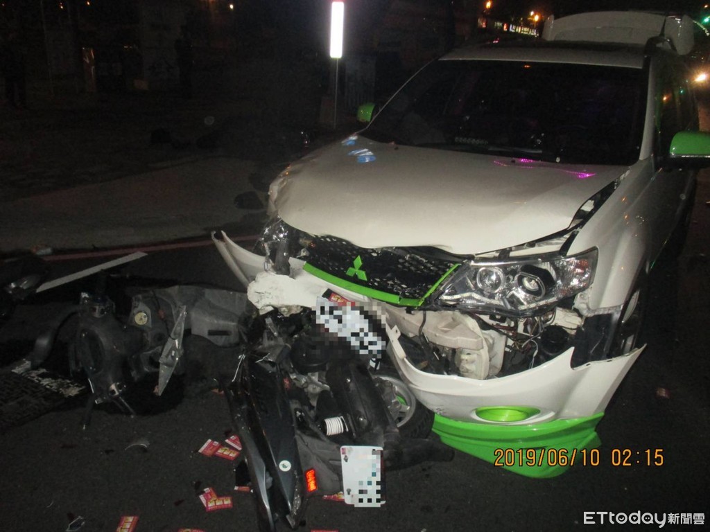 第六警分局交通分隊小隊長蔡金寅表示,10日凌晨2點04分,廖男駕駛白色休旅車沿文心路外側車道往市政路方向行駛,該路段是有稍微彎度,行近市政北三路時,不慎撞上右側路邊停車的7輛機車,造成廖男全身輕微擦挫傷,拒絕送醫。