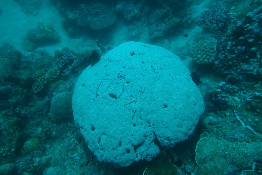 ▲小琉球活珊瑚遭「刻名留念」,在地鄉親一看都傻了...(圖/翻攝自臉書/靠北潛水)