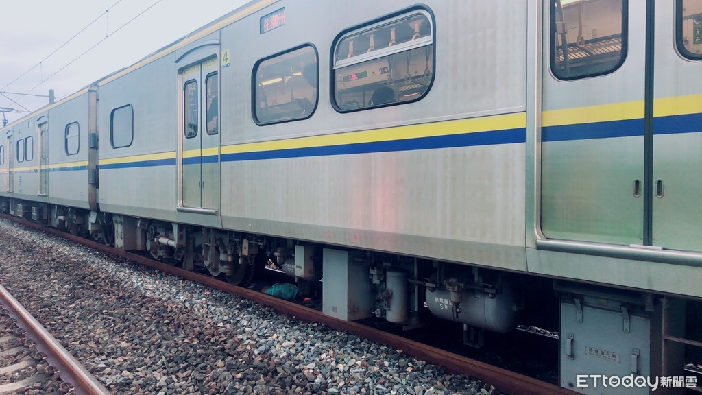 ▲台南市柳營區義士路五段一處平交道發生鐵道車禍命案,一列區間車行經該處時,撞及1名路人,該名男子被捲入列車車廂底,身體變形已明顯死亡。(圖/記者林悅翻攝)