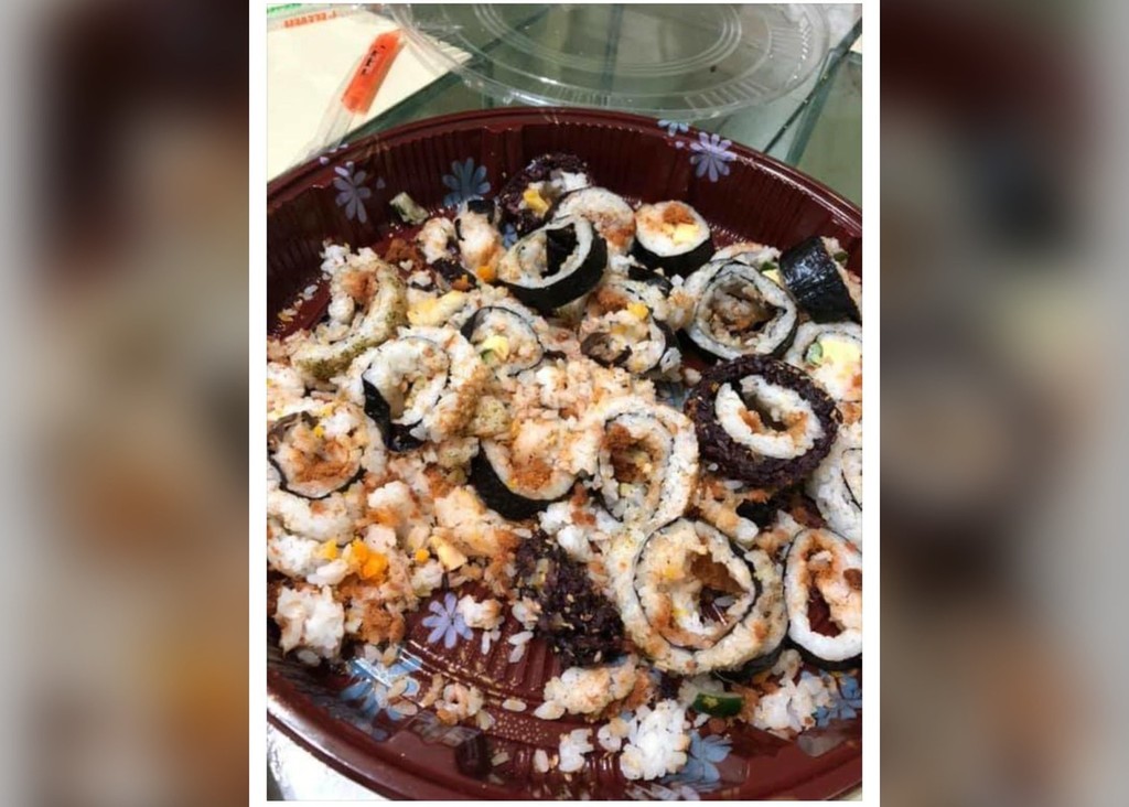女網友在臉書《爆廢公社》發文,買了壽司回家,原本打算與3個孩子一同享受天倫之樂,沒想到忙完回到餐桌,壽司竟變得慘不忍睹。從原PO上傳的照片中可以看見,壽司餐盒被掀開,而好幾塊壽司的餡料、米飯散開在餐盒內全部混在一起,有些壽司還呈現中空狀態,外部的海苔完好,但中間的餡料卻被吃掉,讓原PO苦喊「3個屁孩留這樣給阿母」、「這是阿母的生日大餐,請問裡可以賣小孩」。