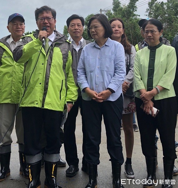總統蔡英文上午在行政院副院長陳其邁、桃園市鄭文燦市長及陳賴素美等多位立委陪同,視察「觀音區樹林里蓮花滯洪池」,並聽取吳進昌里長說明蓮花滯洪池在豪大雨來臨前實際操作情形,且前後只花50萬元就達到目前滯洪效果。