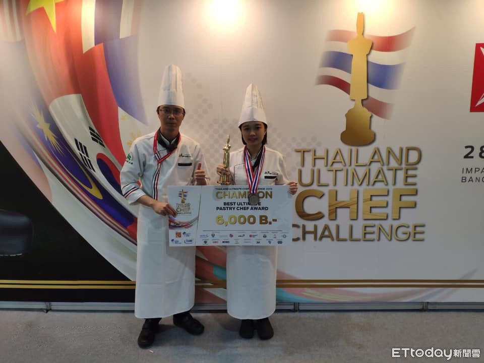 崑山科技大學餐飲管理及廚藝系師生團隊,5月底前往泰國參加「2019泰國TUCC極限廚師挑戰賽」,共榮獲2金7銀16銅11佳作,2年級的王庭郁以翻糖作品《精靈》以及「西式四道甜點」組合等兩項作品,以總和最高分之姿奪下「最佳甜點師」大金人一座。