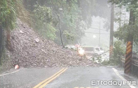 ▲受豪雨影響,南投縣埔霧公路人止關坍方阻斷道路。(圖/仁愛分局提供)