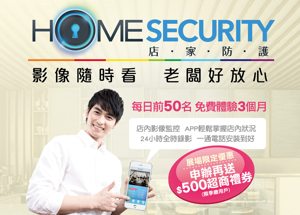 凱擘大寬頻前進2019夏季創業加盟展,特別推出「HomeSecurity店家防護」服務,只要月付 549 元,就能讓頭家全天候掌握店內大小事。HomeSecurity店家防護服務透過App即可隨時觀看高畫質的即時影像,介面操作簡單又提供多螢畫面,即使頭家不在店內也能同步查看即時影像並做人力調動;還有完善的異常告警機制,在緊急狀況發生時,按下App中的緊急按鈕功能即可第一時間通報緊急聯絡人,就像24小時的隱形保鑣。