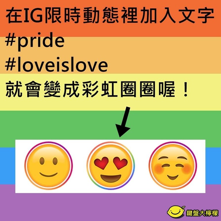 ▲去年同志驕傲月,Instagram只要標註相關詞彙就會變成彩虹字樣。