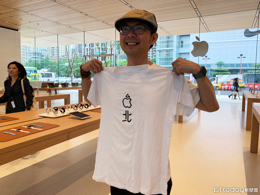 ▲蘋果排隊限定紀念T-shirt。(圖/記者邱倢芯攝)
