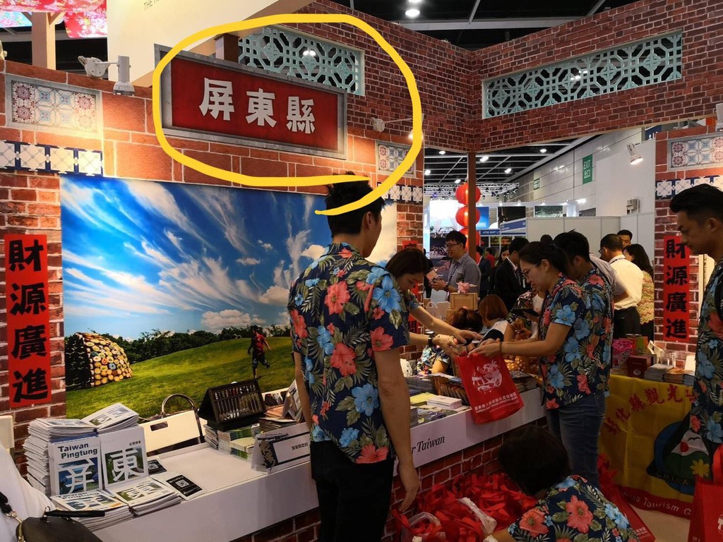 陳學聖PO文也附上幾張照片,他提到,在香港的朋友看不過去,拍了幾張旅展的現場照片給他,照片中有中央客委會、地方無黨執政的台北市、民進黨執政的屏東縣、基隆市等。他說,實際上,不只這些單位,中央還有觀光局各國家公園管理處、退輔會農場,連工研院都派團參加。