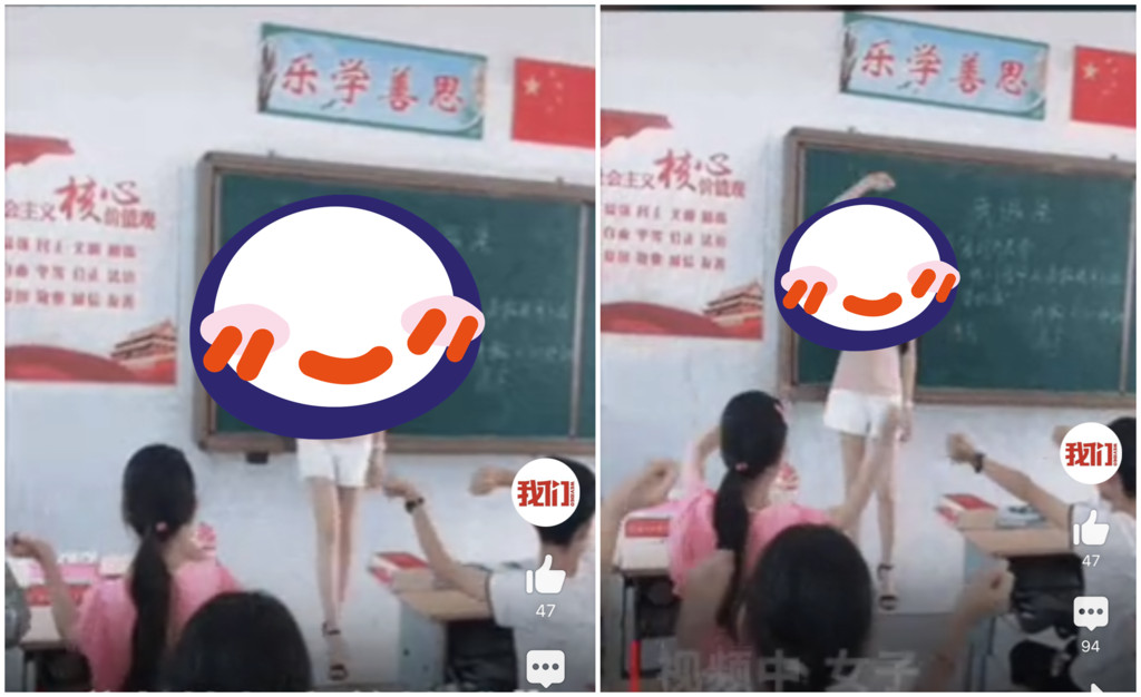 ▲一則身穿熱褲,露著白皙長腿的女教師與學生互動的影片爆火網路。(圖/翻攝自《新京報我們》)