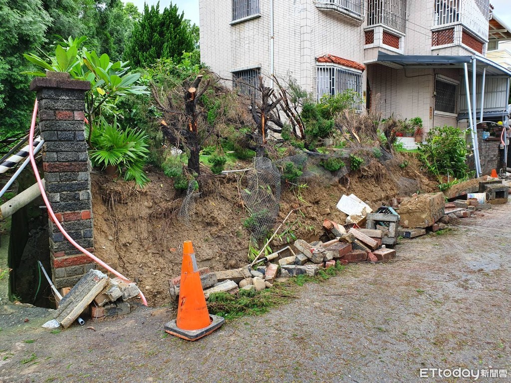 受鋒面影響,各地豪大雨連日不停歇,苗栗豪雨所造成的災情不只有樹倒,1名住在造橋鄉祥騰社區的鍾姓男子表示,自己家前的圍牆不敵大雨沖刷,應聲倒塌,懷疑是旁邊施工所影響,幸好當時家人都不在,逃過一劫。