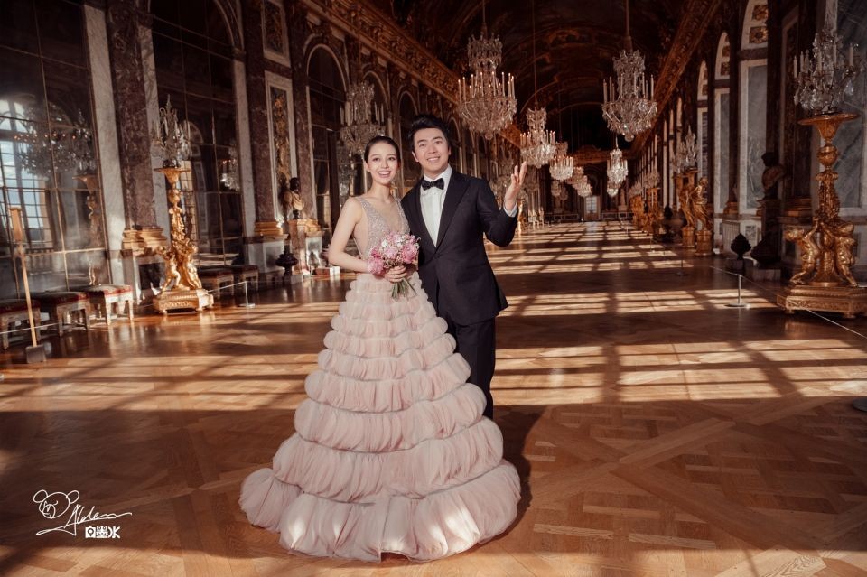 被喻為國寶級鋼琴家的郎朗於(6月2日)宣佈結婚,並於巴黎凡爾賽宮辦婚宴迎娶24歲的德韓混血兒美嬌娘Gina Alice。兩人昨在法國凡爾賽宮舉行婚宴後,郎朗連發了數張婚紗與眾人分享新婚喜悅。