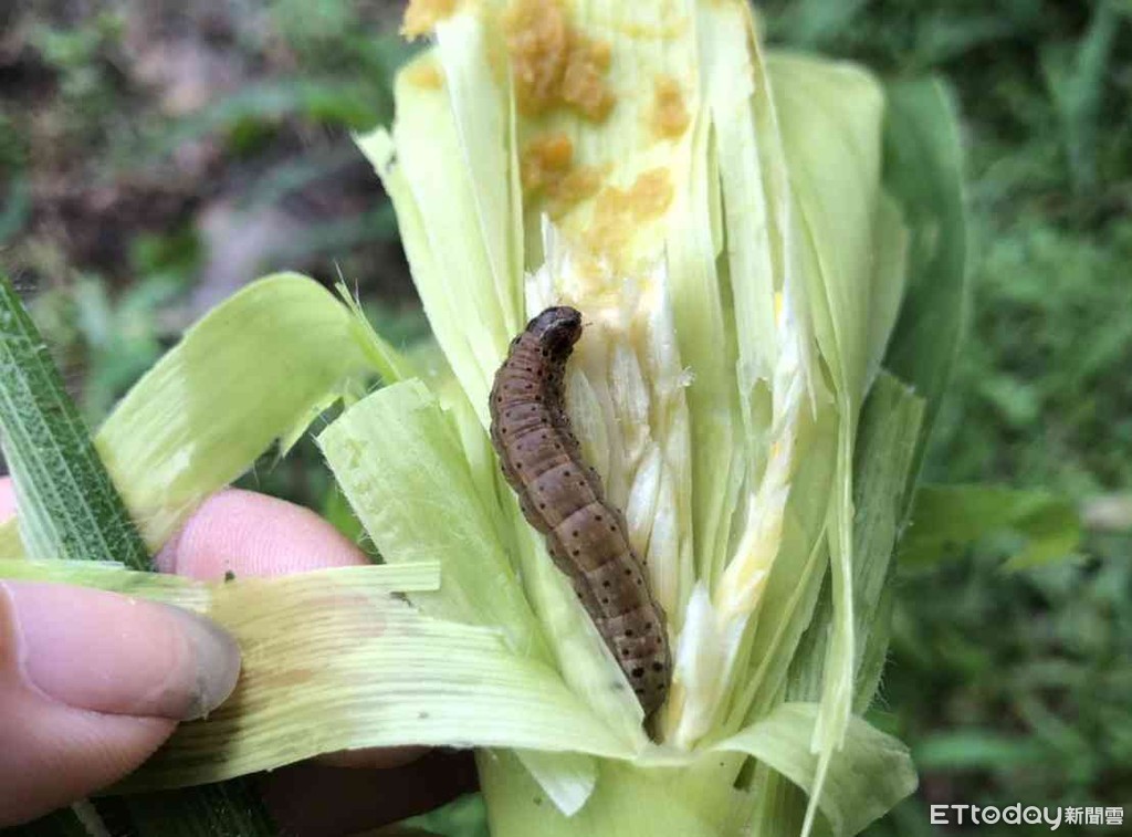 ▲台南市鹽水跟仁德發現秋行軍蟲,經送防檢局連夜鑑定,證實是秋行軍蟲,所以說秋行軍蟲不僅越過台灣海峽到達台灣北部,現在更越過八掌溪到台南市。(圖/記者林悅翻攝)