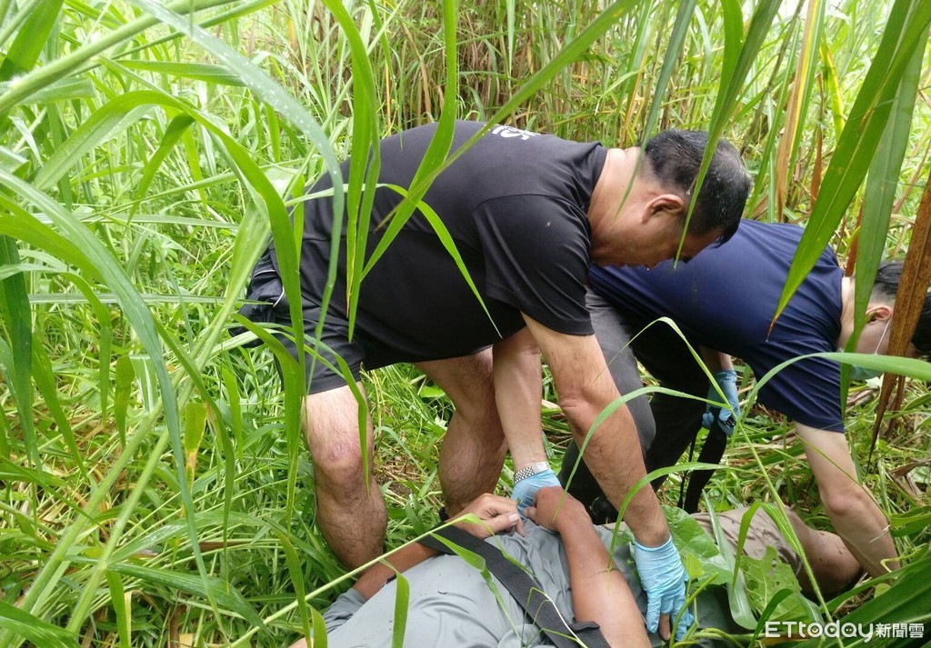 ▲一名男子從台南市柳營區雙營橋跳下,人掉落在橋下岸邊,由消防人員前往搶救送醫。(圖/記者林悅翻攝,下同)