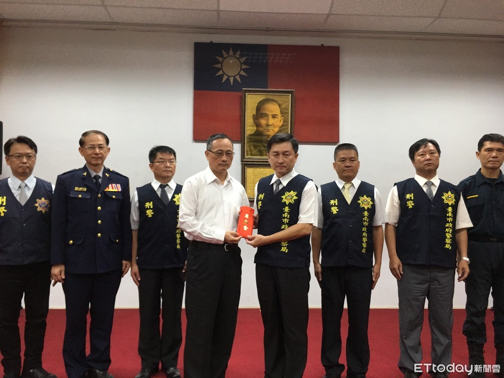 ▲內政部警政署長陳家欽,前往台南市警新營分局慰勉並頒發獎金給有功人員。(圖/記者林悅攝,下同)
