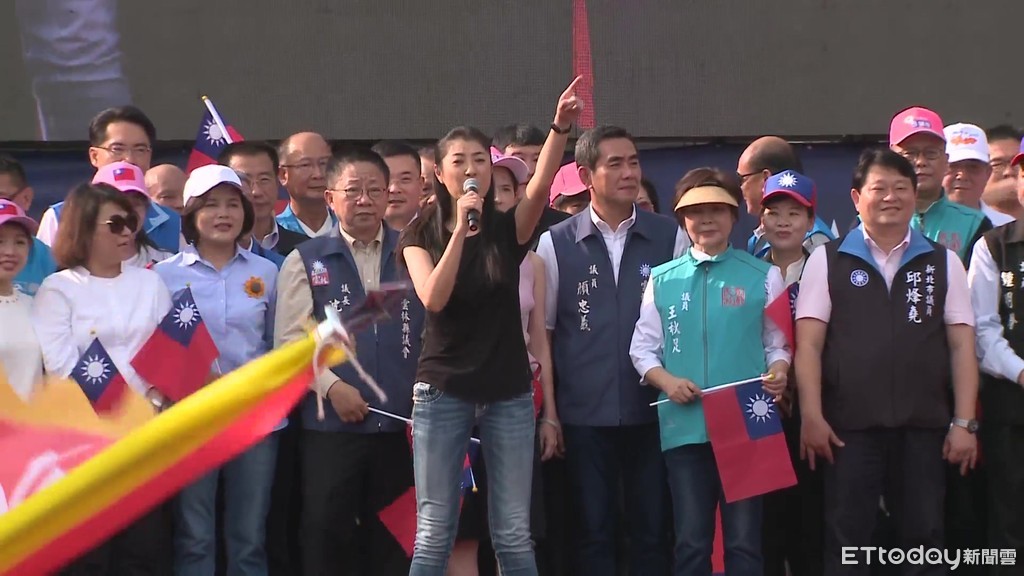 高雄市長韓國瑜15日雲林造勢,而不少韓粉都已經頂著32度的高溫,在台下揮舞著國旗,等著韓國瑜的到來,而稍早神力女超人許淑華也到了現場,她穿著簡單的黑色上衣、牛仔長褲,逆天長腿超吸睛。