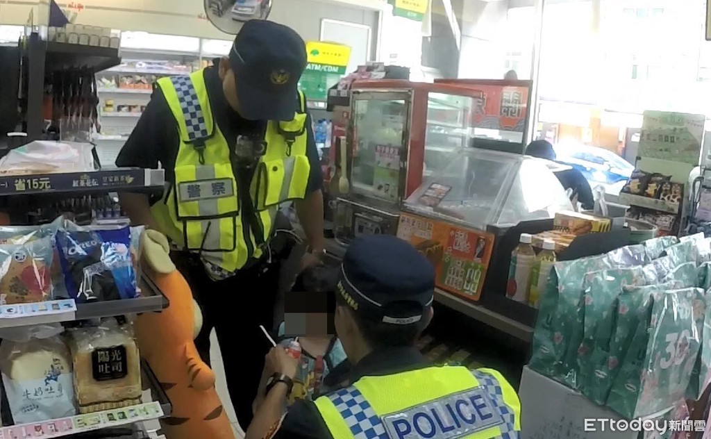 ▲員警用養樂多安撫走失女童緊張。(圖/記者陳玉翻攝,下同)