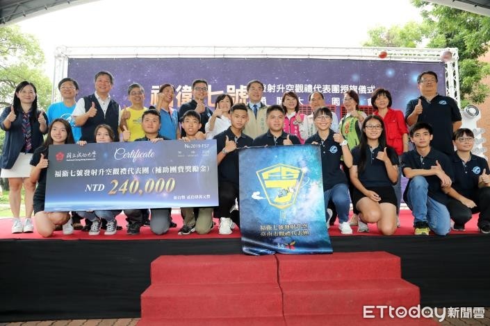 ▲南瀛天文館舉辦「勇闖太空園遊會」,黃偉哲市長授旗予即將前往美國見證福衛七號發射升空的台南市高中生代表團。(圖/記者林悅翻攝,下同)