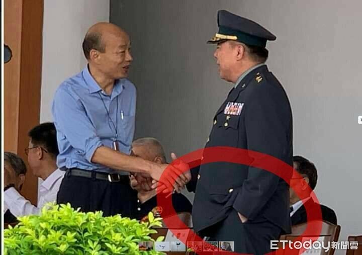 高雄市長韓國瑜16日到高雄鳳山,出席陸軍官校創校95周年慶祝大會,國防部常務次長徐衍璞也代表上前、和韓國瑜握手致意,沒想到之後網路隨即流傳一張照片,只見徐衍璞和韓國瑜握手時,只伸出一隻手來握、另一隻手則插在口袋內,引來民眾痛批國軍幹部「高高在上」。