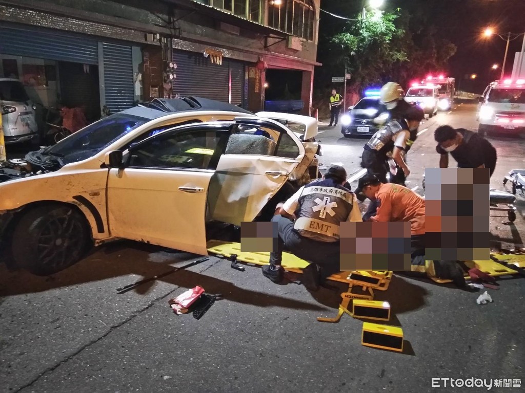 警方表示,當時駕車的男子行經該路段時,不慎失控撞上電線桿,接獲民眾報案後趕往現場處理,只見車側的B柱因前大撞擊導致扭曲變形,所幸車內男女傷勢都不重,已在第一時間送醫。