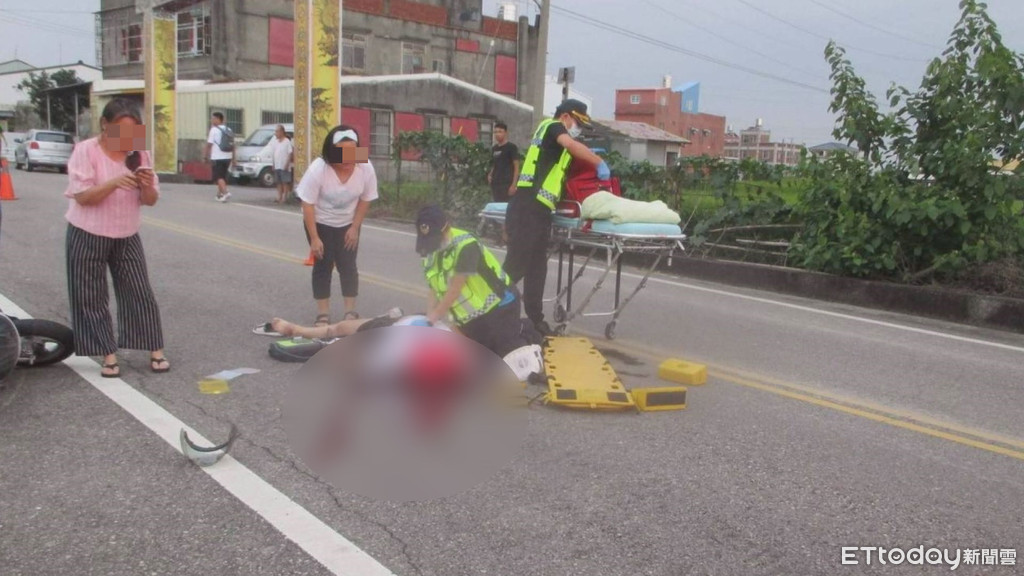 ▲鄧姓少女騎車摔倒血流如注,救護人員現場急救後還是宣告不治。(圖/記者黃孟珍翻攝)