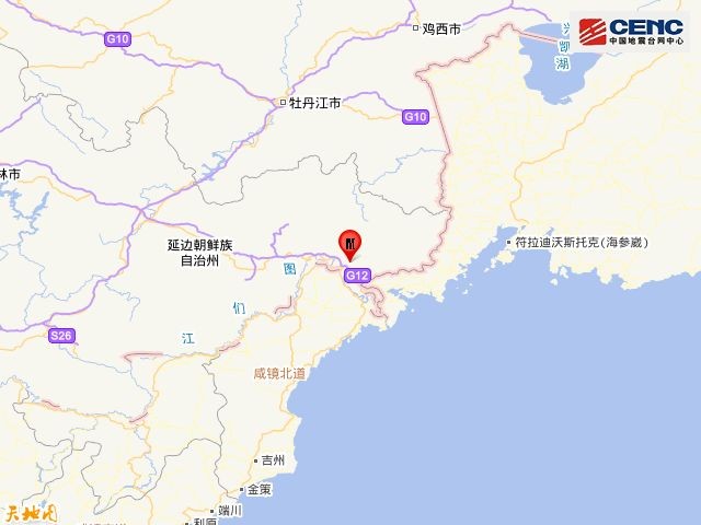 據中國地震台網正式測定,吉林延邊州琿春市17日19時38分發生1.3級地震(疑爆,指人工地震,可能是核爆引起的),震中位於北緯42.94度,東經130.30度,震源深度0千米。